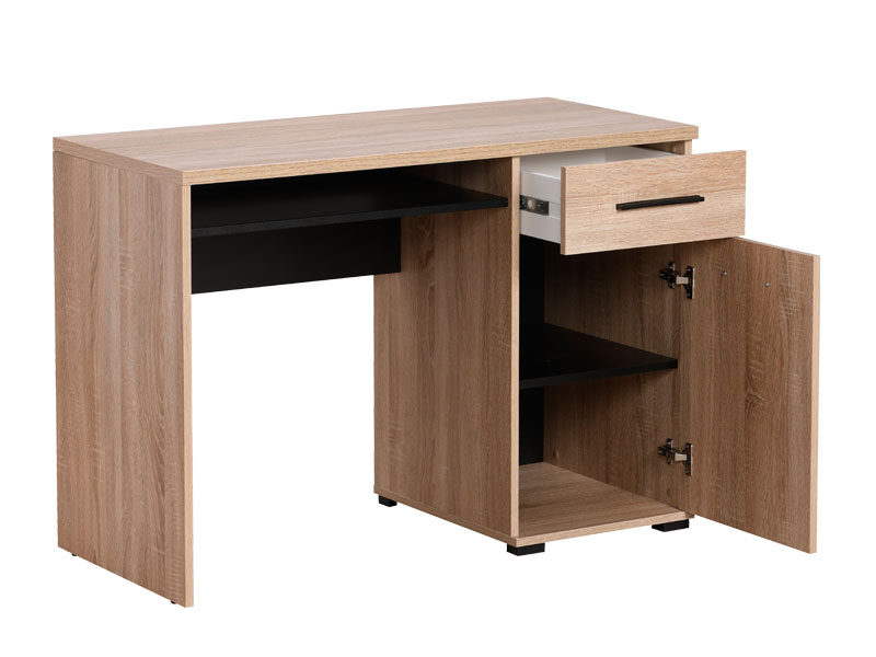 Kompjuter sto TALES, u kombinaciji dekora sonoma hrasta i crnog drveta, posjeduje praktičnu radnu površinu ispod koje se nalazi fioka i zatvoren segment za odlaganje svih važnih stvari.