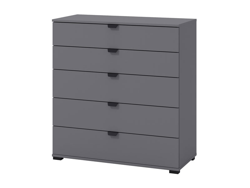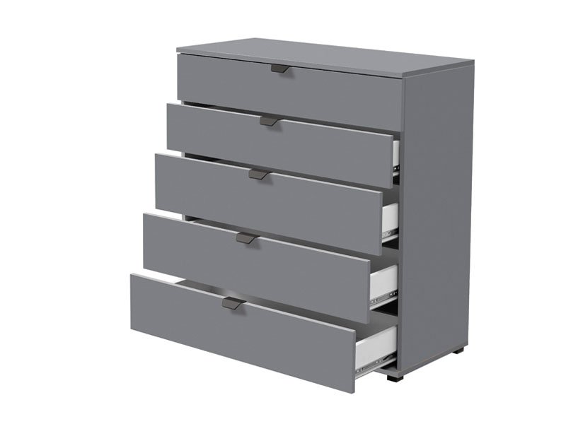 Komoda DUERO 5F 90, u grafit sivom dekoru dizajnirana je tako da zahvaljujući upotrebnom prostoru koji obezbjeđuje pet prostranih fioka, spada u elemente sa velikom upotrebnom vrednošću. Komoda DUERO 5F 90 je pogodna za opremanje predsoblja, dnevne zone ili spavaće sobe.
