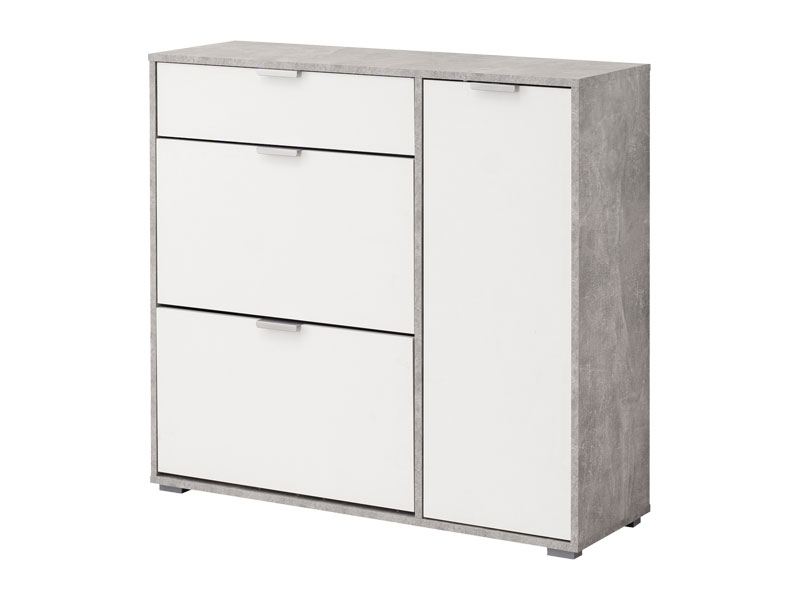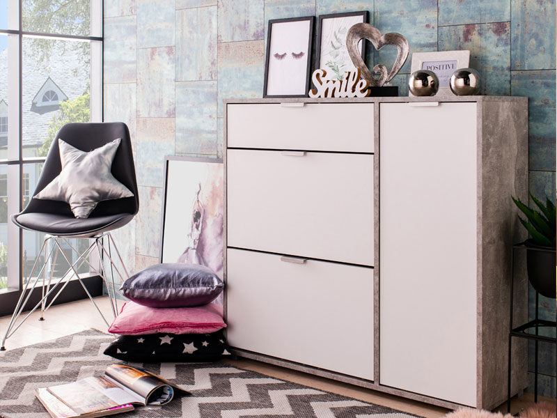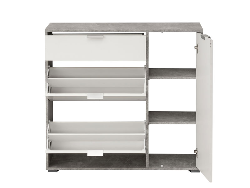 Cipelar ARCO 2, u opak bijelom dezenu, idealno je rješenje za uklapanje u prostore različitih dimenzija. Ovaj model posjeduje dva segmenta za odlaganje obuće, praktičnu fioku i desno pozicioniran deo sa dvije police.