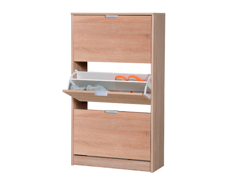 Cipelar HUGO 23, u sonoma dekoru, posjeduje tri segmenta za odlaganje sezonske obuće, a zahvaljujući svojim dimenzijama i dvorednoj organizaciji, predstavlja veoma efektno funkcionalno rješenje za uređenje predsoblja skromnijih dimenzija.
