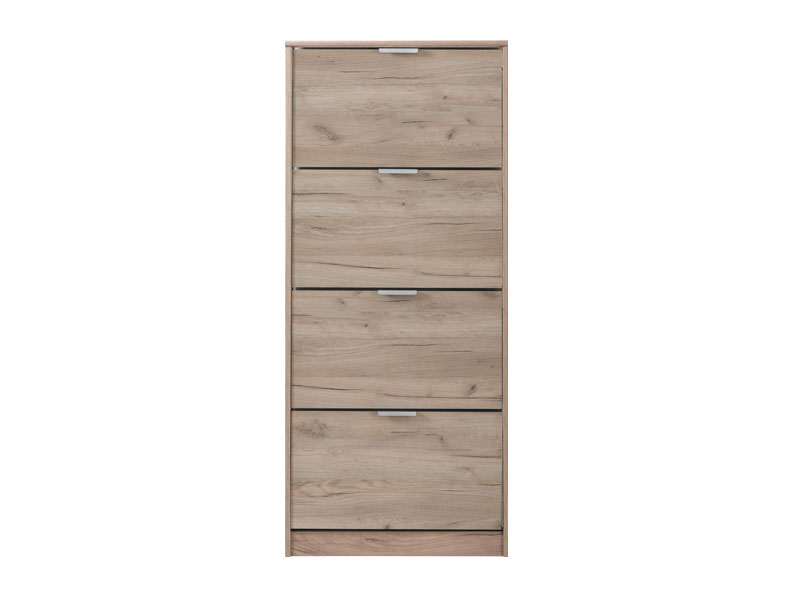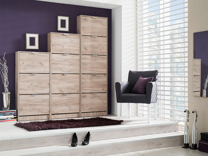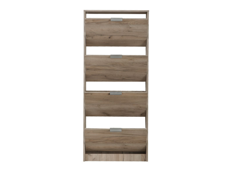 Cipelar HUGO 24, u dekoru sivog hrasta, posjeduje četiri segmenta za odlaganje sezonske obuće, a zahvaljujući svojim dimenzijama i dvorednoj organizaciji, predstavlja veoma efektno funkcionalno rješenje za uređenje predsoblja skromnijih dimenzija.