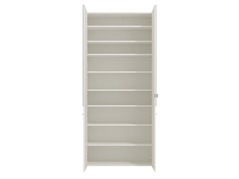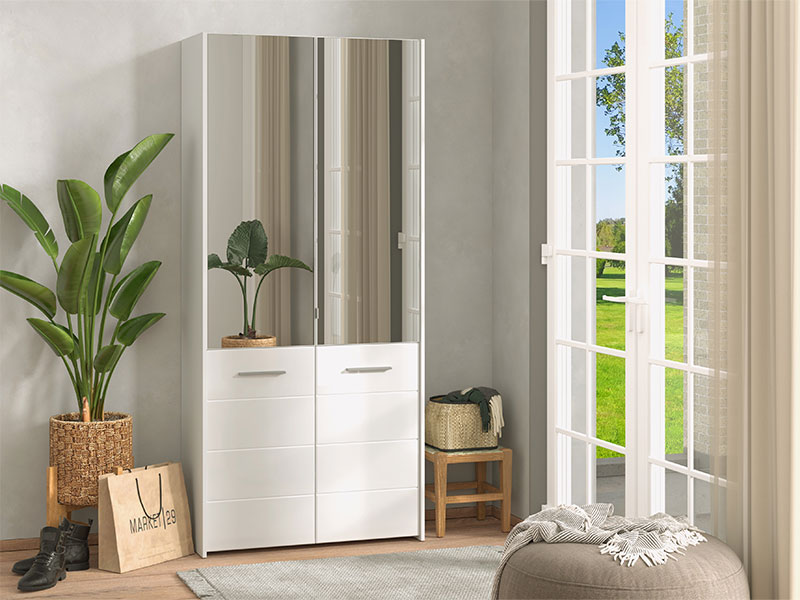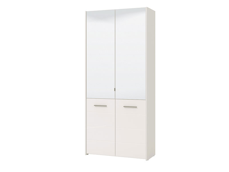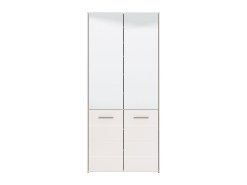 Model cipelara MENORICA 2K 2OG, u kombinaciji dekora opak bijele i bijele lak folije, obogaćen je sa dva praktična ogledala u gornjem dijelu elementa. U unutrašnjosti se nalaze zatvorene police za odlaganje obuće, koje pružaju mogućnost racionalne organizacije predsoblja.