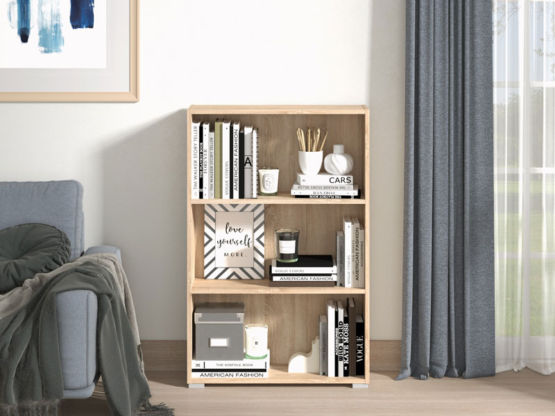 Funkcionalni model otvorene police TOMAR 3, u sonoma hrast dekoru, sadrži tri posebne police i veoma efektno će se uklopiti u raznim tipovima enterijera.