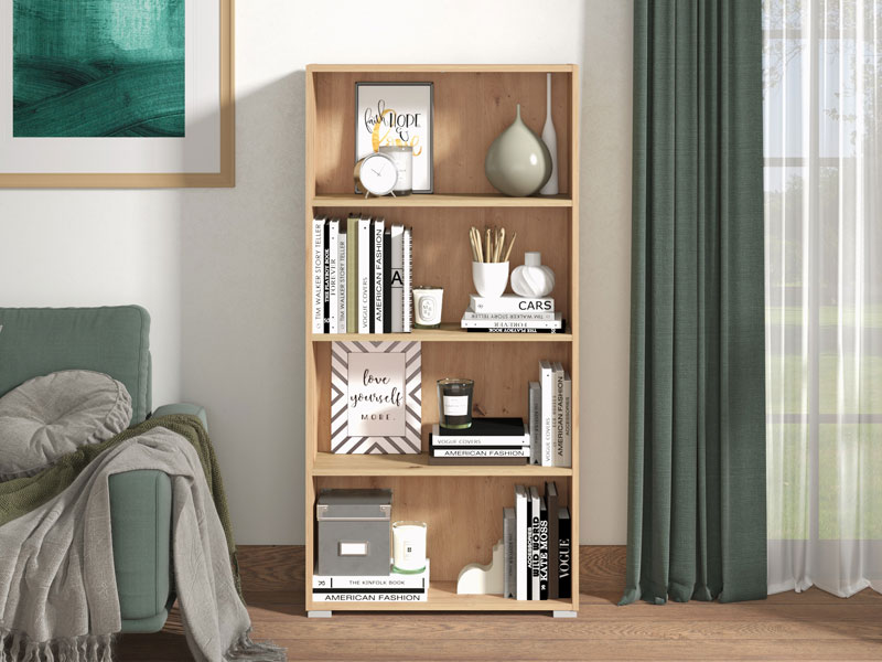 Funkcionalni model otvorene police TOMAR 4, u artisan hrast dekoru, sadrži četiri posebne police i veoma efektno će se uklopiti u raznim tipovima enterijera.