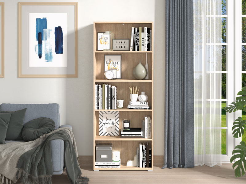 Funkcionalni model otvorene police TOMAR 5, u sonoma hrast dekoru, sadrži pet posebnih polica i veoma efektno će se uklopiti u raznim tipovima enterijera.