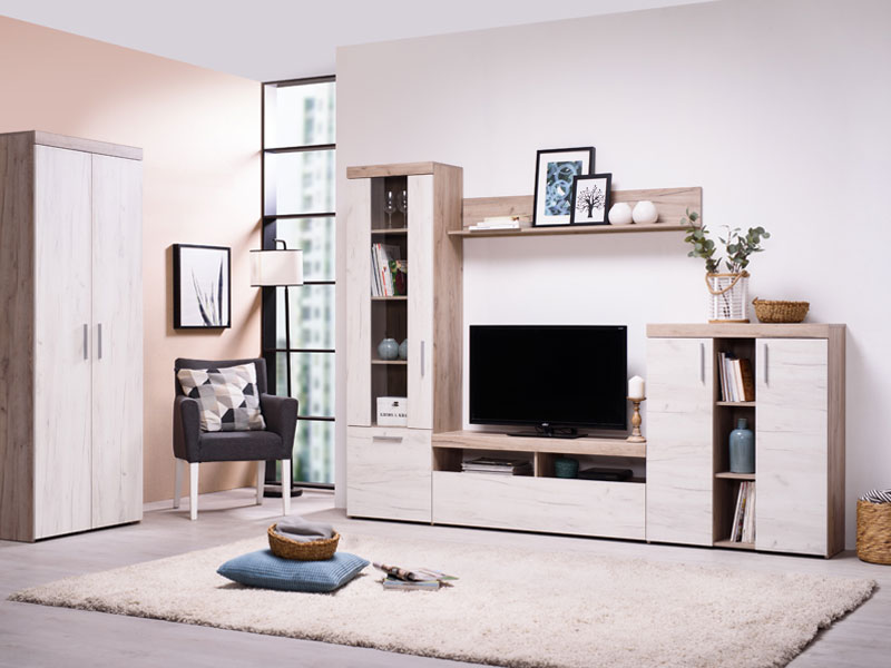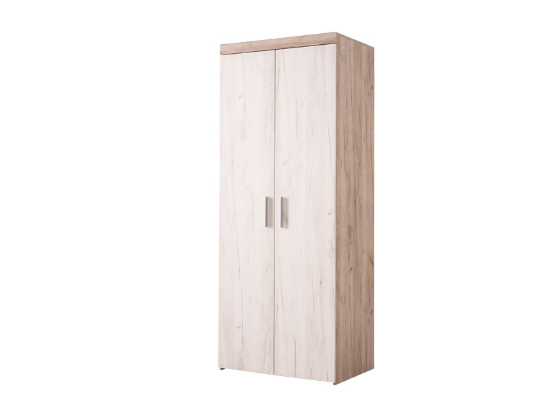 Ormar ARNO 2K, u kombinaciji dekora sivog i bijelog hrasta, karakteriše dizajn čistih linija i bogate teksture kao i praktičan upotrebni prostor koji se sastoji od garderobne šipke i police iznad nje. Ovaj model dvokrilnog ormara kompatibilan je sa istoimenim regalom za funkcionalno opremanje dnevnog boravka.
