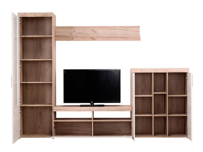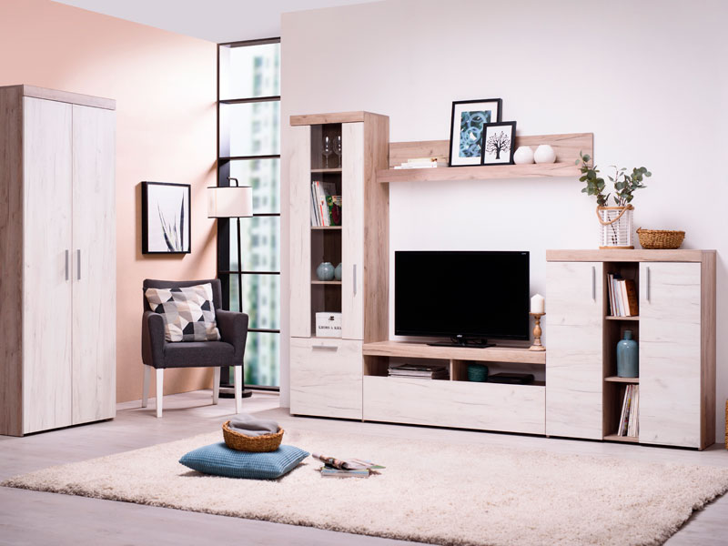 Regal ARNO, u kombinaciji dekora sivog i bijelog hrasta, karakteriše dizajn čistih linija i bogate teksture, kao i skladna kombinacija elemenata sa poluotvorenim, zastakljenim i otvorenim rješenjima. Zahvaljujući unapređenoj funkcionalnosti upotrebnog prostora i toploj koloritnoj šemi ovaj model regala stvoriće idealan dnevni boravak prepun dragih uspomena, knjiga i dekoracije.