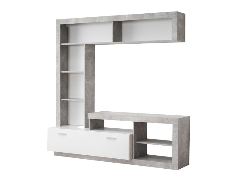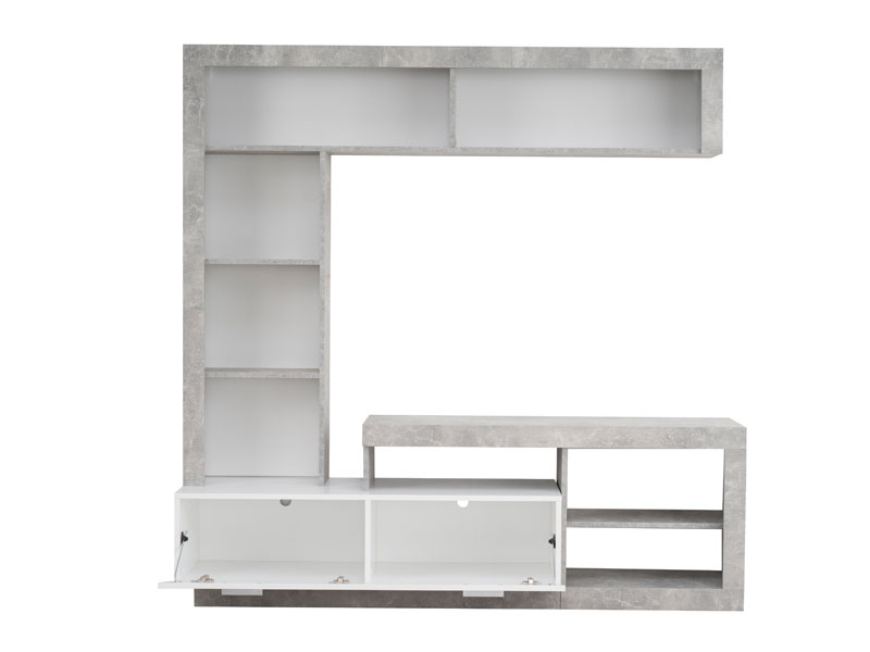 Regal GLEN, u kombinaciji crnog drveta i opak bijelog dezena, prati usaglašenost forme i funkcije, kao i upečatljiv dizajn namijenjen modernom osvježenju dnevnog boravka. Zatvoreni dio, centralno pozicionirana TV polica i otvoreni segmenti formiraju kompaktnu cjelinu za čuvanje svih vaših dragih sitnica i audio-vizuelnih uređaja.