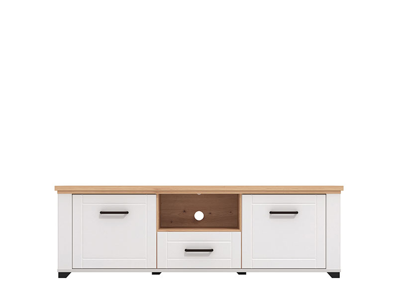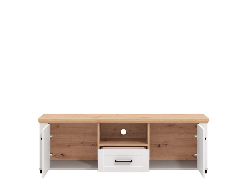 TV polica VALENCIA TV 160 3K1F u kombinaciji dekora artisan hrasta, opak bijele i bijele mat folije, je dizajnerski privlačno rešenje za uređenje dnevnog boravka, koje daje topliju estetiku enterijeru. Upotrebni prostor čine praktična fioka u središnjem dijelu, jedan otvoreni i dva zatvorena dijela, koji poseduju praktično raspoređene police za odlaganje. Frontovi su obogaćeni crnim ručicama jednostavnog dizajna, a koje su usklađene sa dizajnerskom linijom cijele kolekcije. Pripada istoimenom sistemu elemenata VALENCIA, koji odlikuje funkcionalnost i praktičnost kojoj doprinosi, kako veliki broj elemenata u sistemu, tako i odlična organizacija prostora za odlaganje.