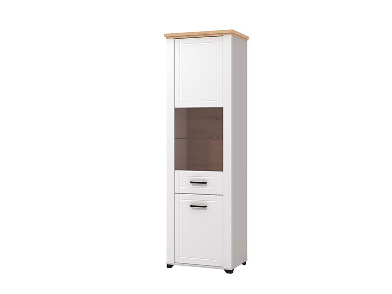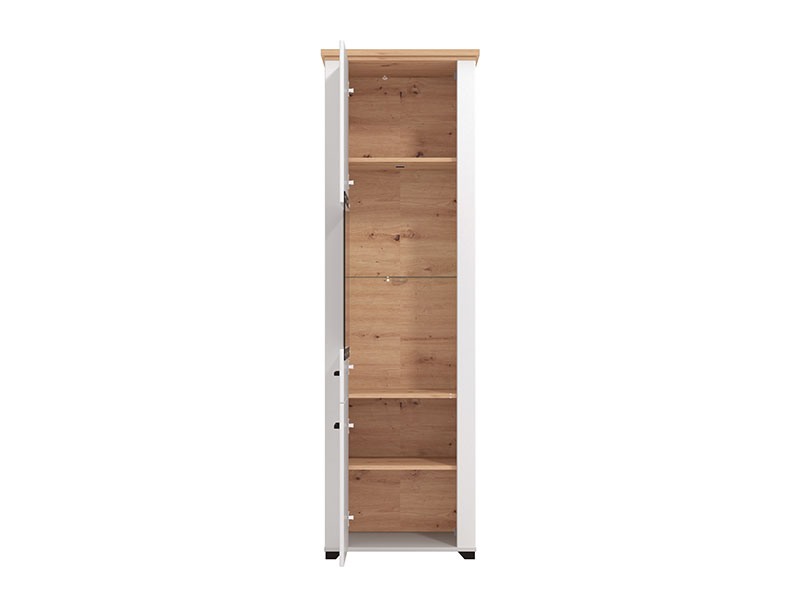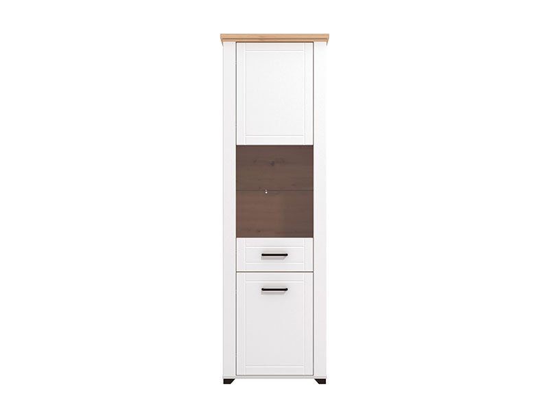 Vitrina VALENCIA 1K VS1 u kombinaciji dekora artisan hrasta, opak bijele i bijele mat folije, je dizajnerski privlačno rješenje za uređenje dnevnog boravka, koje daje topliju estetiku enterijeru. Upotrebni prostor čine jedan zatvoren i drugi zastakljen dio, koji u unutrašnjosti posjeduje praktično raspoređene police za odlaganje. Frontovi su obogaćeni crnim ručicama jednostavnog dizajna, a koje su usklađene sa dizajnerskom linijom cijele kolekcije. Pripada istoimenom sistemu elemenata VALENCIA, koji odlikuje funkcionalnost i praktičnost kojoj doprinosi, kako veliki broj elemenata u sistemu, tako i odlična organizacija prostora za odlaganje. Vitrina VALENCIA 1K VS1 poseduje mogućnost dodavanja LED rasvete.