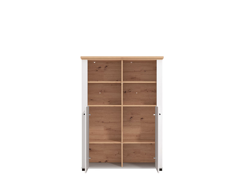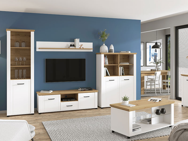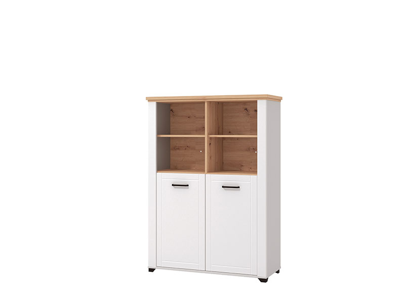Vitrina VALENCIA POP 2K u kombinaciji dekora artisan hrasta, opak bijele i bijele mat folije, je dizajnerski privlačno rješenje za uređenje dnevnog boravka, koje daje topliju estetiku enterijeru. Upotrebni prostor čine jedan otvoreni dio sa policama i dva zatvorena dijela, koji u unutrašnjosti poseduje praktično raspoređene police za odlaganje. Frontovi su obogaćeni crnim ručicama jednostavnog dizajna, a koje su usklađene sa dizajnerskom linijom cijele kolekcije. Pripada istoimenom sistemu elemenata VALENCIA, koji odlikuje funkcionalnost i praktičnost kojoj doprinosi, kako veliki broj elemenata u sistemu, tako i odlična organizacija prostora za odlaganje.