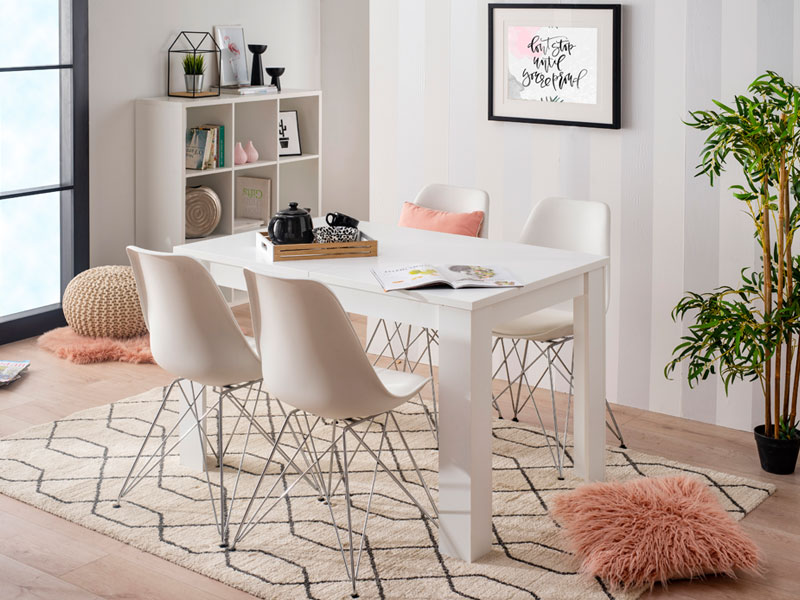 Trpezarijski sto DT 120x80, u opak bijelom dezenu, idealan je za sve tipove trpezarija. Ukoliko nemate odvojenu trpezariju, odlično će se uklopiti i u dnevnoj sobi, zahvaljujući jednostavnom i skladnom dizajnu. Funkcionalni trpezarijski sto DT 120x80 pruža mogućnost povećanja dužine radne površine za dodatnih 33 cm.