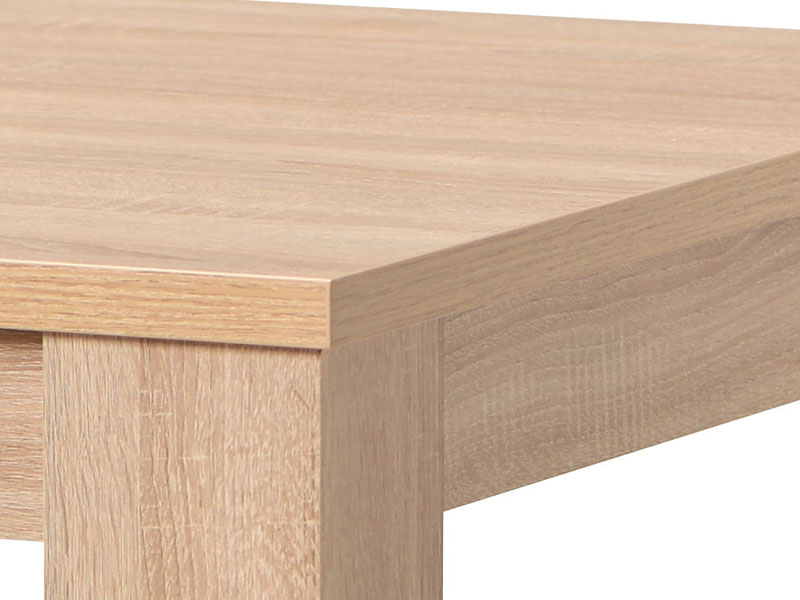 Trpezarijski sto DT 120x80, u sonoma hrast dezenu, idealan je za sve tipove trpezarija. Ukoliko nemate odvojenu trpezariju, odlično će se uklopiti i u dnevnoj sobi, zahvaljujući jednostavnom i skladnom dizajnu. Funkcionalni trpezarijski sto DT 120x80 pruža mogućnost povećanja dužine radne površine za dodatnih 33 cm.