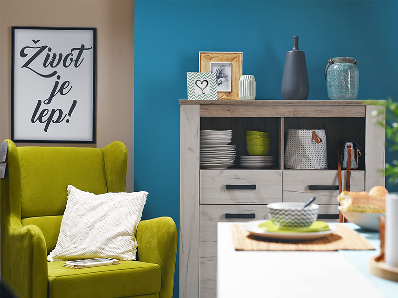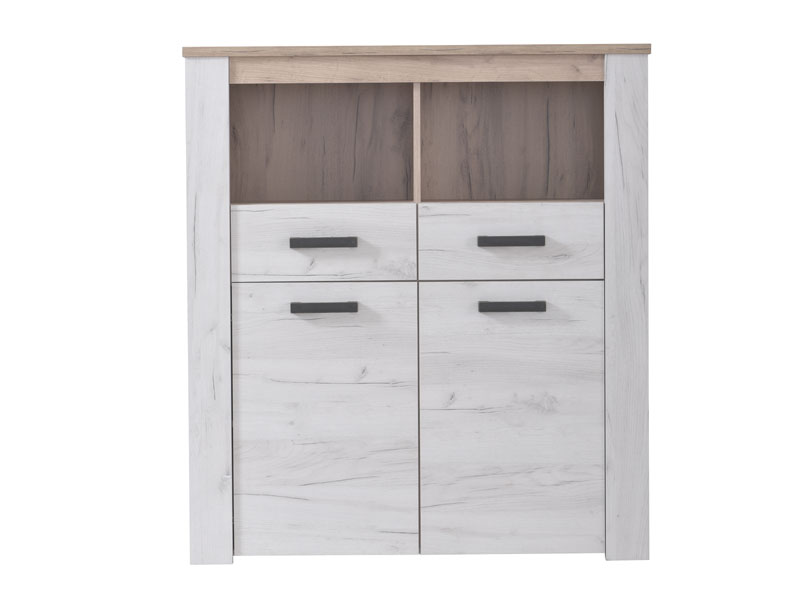 Vitrina KENT POP 2F, u bijelom i sivom hrast dezenu, posjeduje dvije praktične fioke, upotrebni prostor sa policama i otvoreni segment za omiljeni kućni dekor. Dio je istoimene kolekcije koja u vaš dom unosi dodir otmjene klasike i rafiniranog ukusa.
