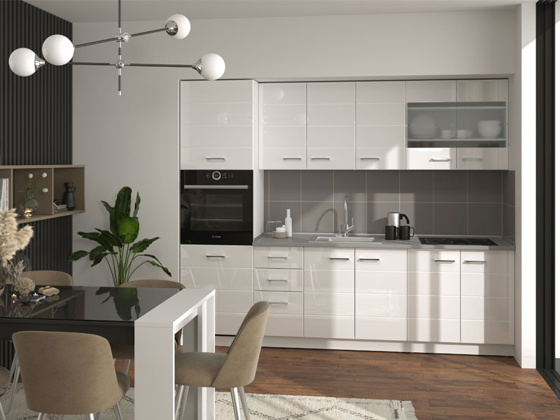 Element kuhinje DIVA BD 60 u kombinaciji korpusa u opak bijelom dezenu i bijele lak folije na frontovima koja doprinosi eleganciji, namijenjen je za odlaganje ili za ugradnu tehniku. DIVA BD 60 je dio istoimene kuhinje koja je dizajnirana da zadovolji funkcionalne i estetske zahteve u opremanju savrenih i elegantnih ambijenata kuhinje.