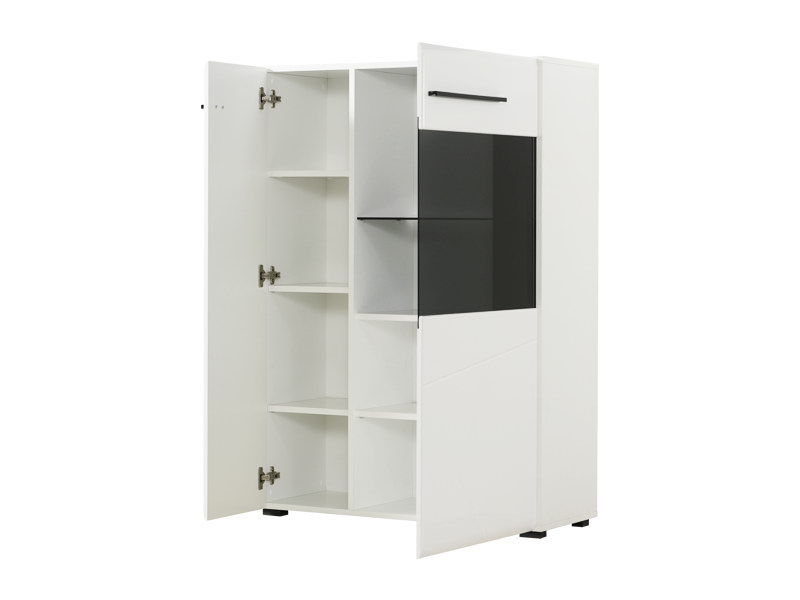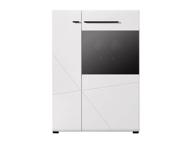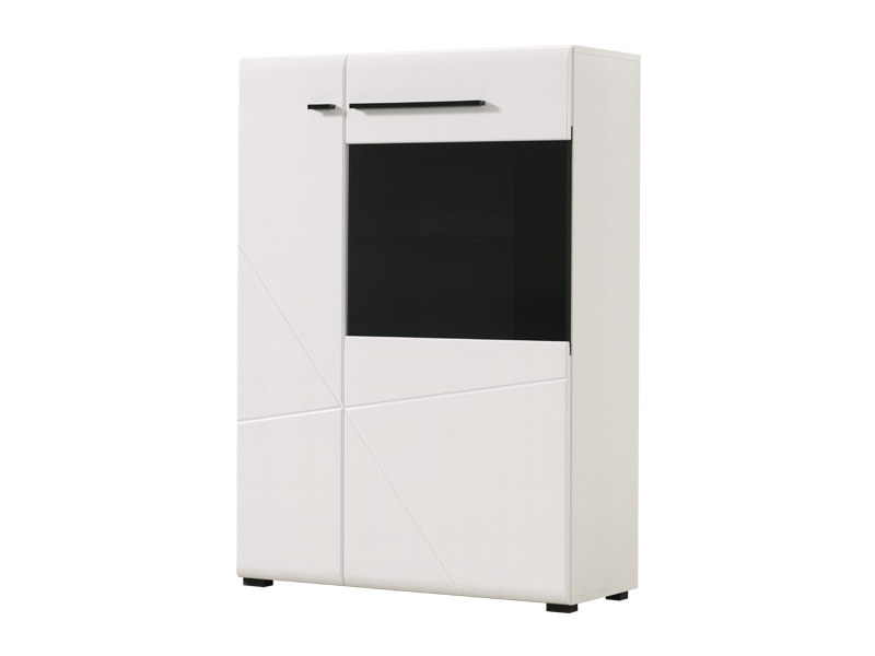 Vitrina TRENTINO 2K VS1, u kombinaciji opak bijele i crne sa frontovima presvučenim bijelom lak folijom sa 3D aplikacijama, dio je sistema elemenata TRENTINO čiji dizajn i funkcionalnost doprinose praktičnim i estetski autentičnim rješenjima za opremanje enterijera. Sastoji se od dva zatvorena dijela sa soft-close zatvaranjem, u čijoj unutrašnjosti se nalaze horizontalne pregrade. Osim 3D aplikacije na frontovima, atraktivan izgled vitrini TRENTINO 2K VS1 daje i tamno parsol staklo, kao i mogućnost ugradnje LED rasvete.