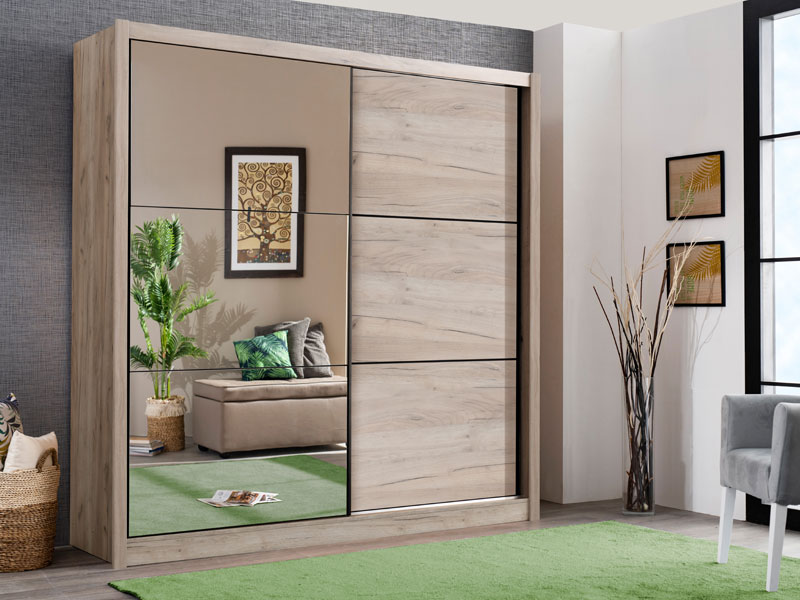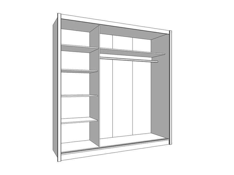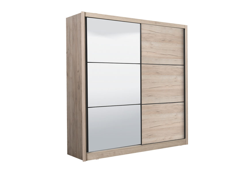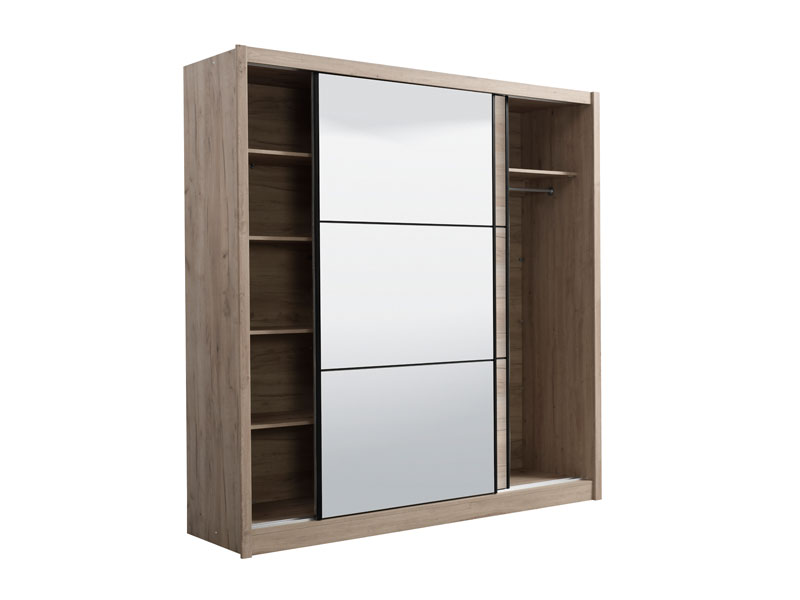 Garderober NAVARA 215 OG u dezenu sivog hrasta je moderno dizajnirano i praktično rješenje za odlaganje. Unutrašnjost se sastoji od segmenta sa policama u lijevom dijelu i prostranog segmenta sa garderobnom šipkom u središnjem i desnom dijelu. Poseban benefit ovog modela je klizni mehanizam koji doprinosi ekonomičnoj organizaciji raspoloživog prostora, kao i ogledalo na lijevom kliznom elementu. Deo je linije NAVARA garderobera, tako da je stilski uklopiv i sa ostalim modelima.