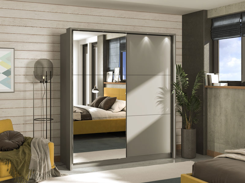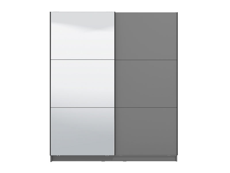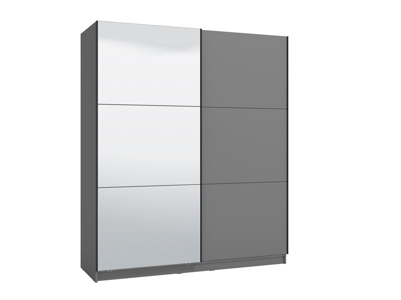 Garderober SIERRA 180 u dekoru grafit sive, predstavlja model garderobera savremenog dizajna i velike praktične upotrebne vrijednosti. Unutrašnjost se sastoji od segmenta sa policama desnom dijelu, kao i segmenta sa garderobnom šipkom u lijevom dijelu. Poseban benefit ovog modela je klizni mehanizam koji doprinosi ekonomičnoj organizaciji raspoloživog prostora, kao i ogledalo na levom kliznom elementu. Posjeduje mogućnost ugradnje usporivača kod kliznog mehanizma koji dodatno doprinose sigurnosti i funkcionalnosti, kao i mogućnost dodavanja LED rasvete.
