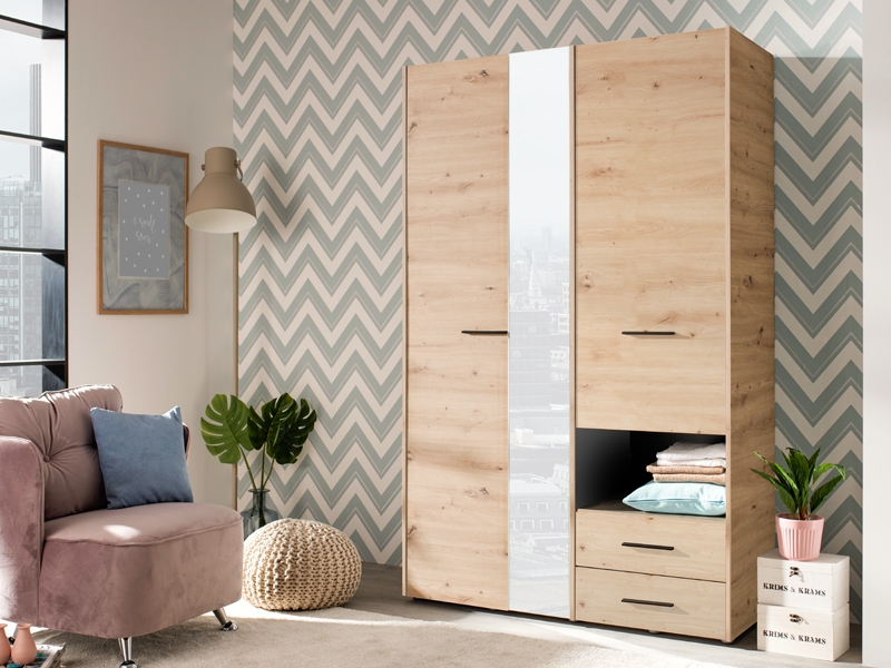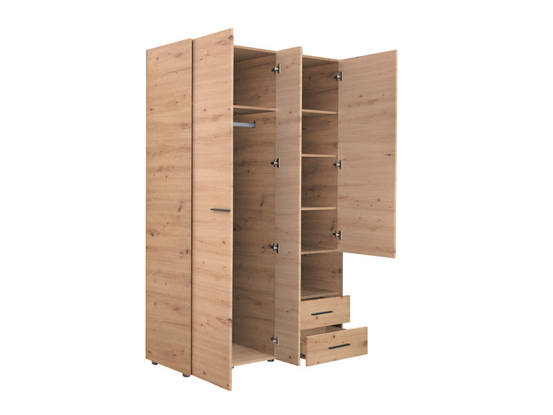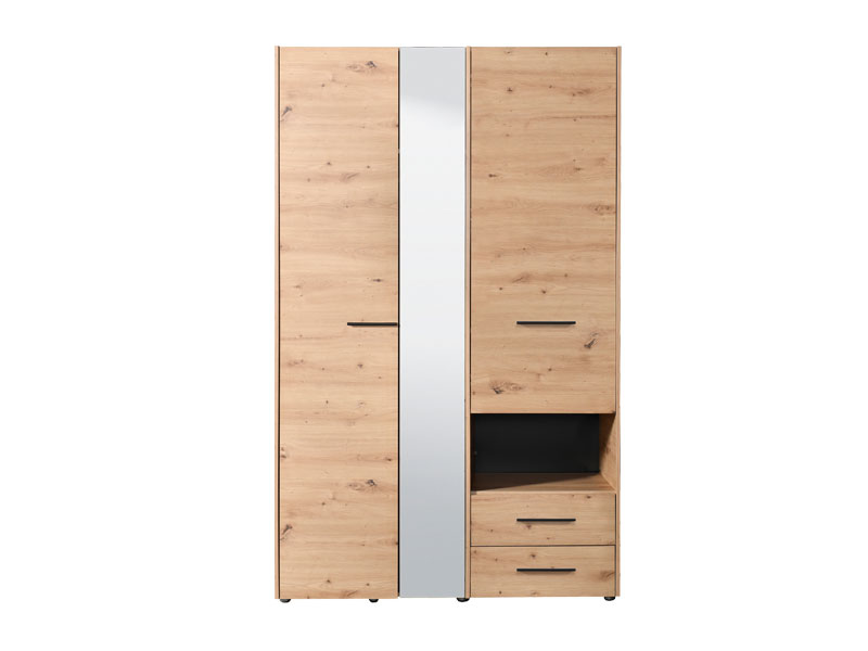 Ormar LEON 3K2FO u dekoru artisan hrasta, sa garderobnom šipkom sa leve, policama i dvije fioke sa desne strane, funkcionalno će doprinijeti organizaciji ambijenta. Ogledalo na središnjem dijelu ormara LEON 3K2FO estetski će oplemeniti i vizuelno povećati ambijent životnog prostora u kome se nalazi.