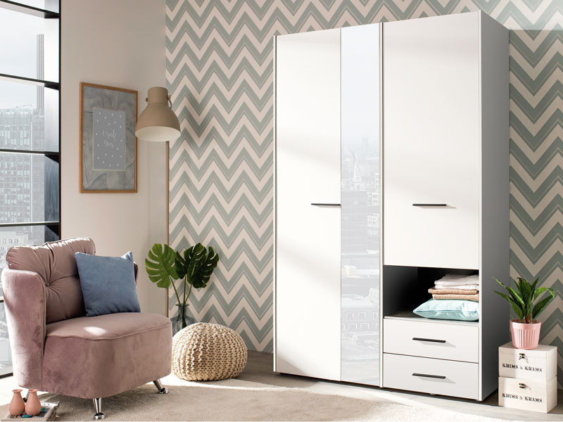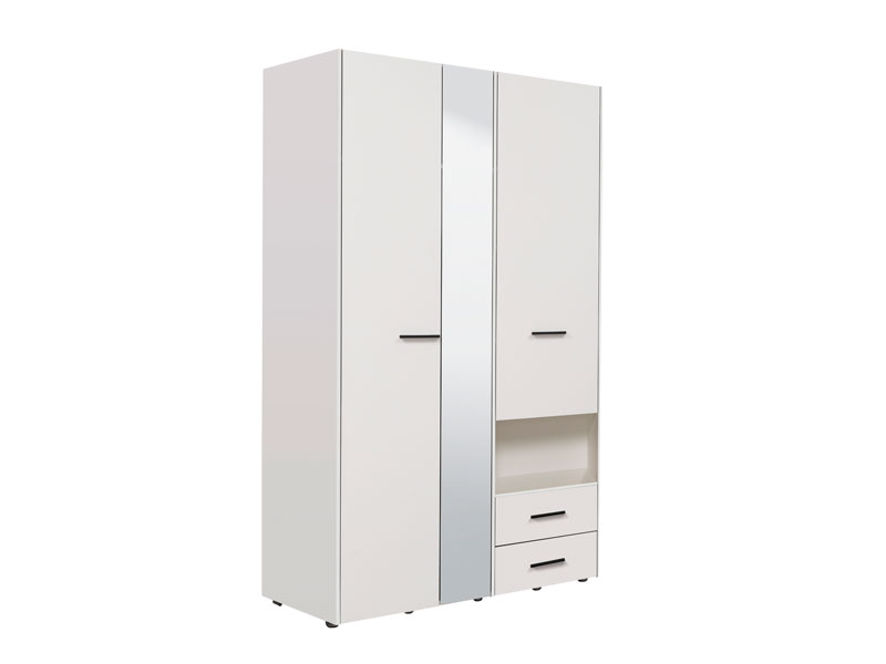 Ormar LEON 3K2FO, u opak bijelom dekoru, sa garderobnom šipkom sa lijeve, policama i dvije fioke sa desne strane, funkcionalno će doprinijeti organizaciji ambijenta. Ogledalo na središnjem dijelu ormara LEON 3K2FO estetski će oplemeniti i vizuelno povećati ambijent životnog prostora u kome se nalazi.