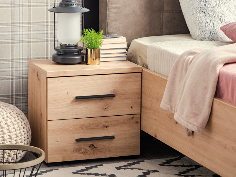 Noćni ormarić DADO NO2F, u dekoru artisan hrasta, veoma praktičnog je dizajna sa dvije vertikalno smještene fioke. Funkcionalan je dio spavaće sobe i doprinosi estetici ambijenta.