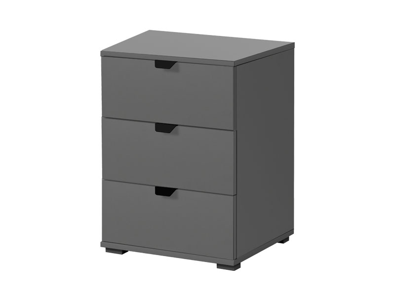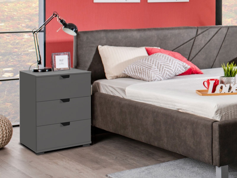 Noćni ormarić DUERO 3F, u sivom dekoru je inovativni model noćnog ormarića, praktičnog dizajna, sa tri vertikalno smještene fioke. Funkcionalan je dio spavaće sobe i doprinosi estetici ambijenta.