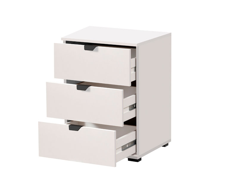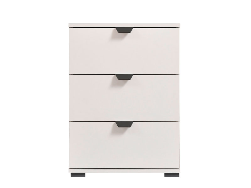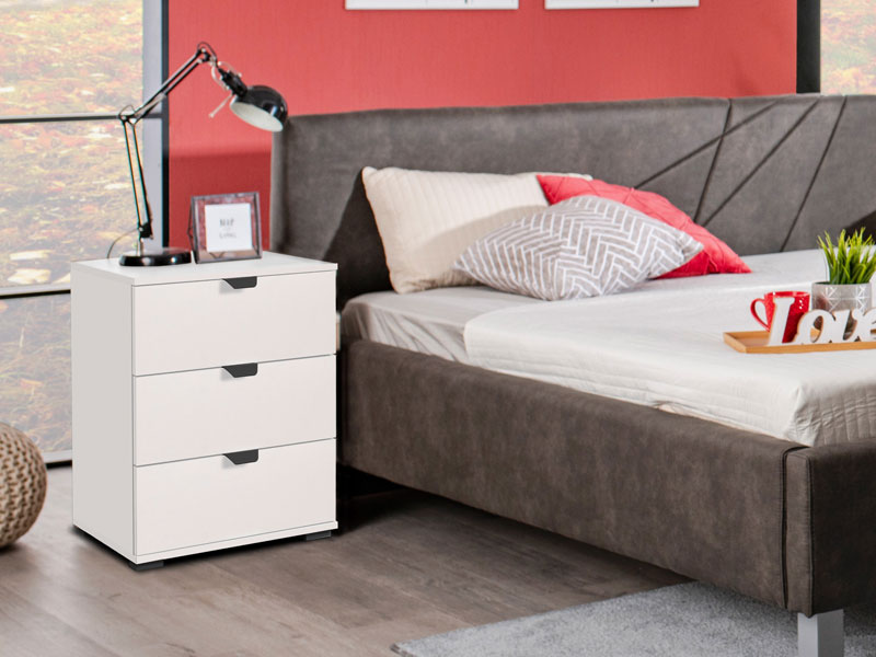 Noćni ormarić DUERO 3F u bijelom dezenu je inovativni model noćnog ormarića, praktičnog dizajna, sa tri vertikalno smještene fioke. Funkcionalan je dio spavaće sobe i doprinosi estetici ambijenta.