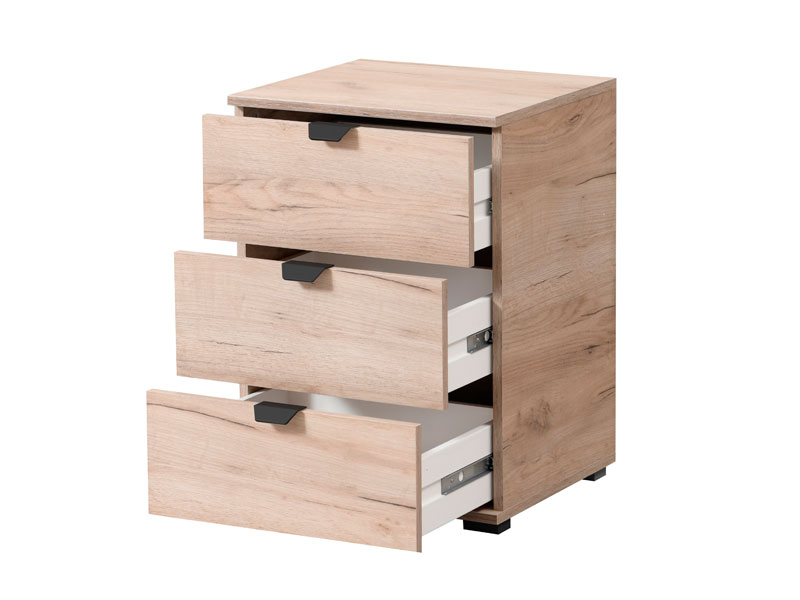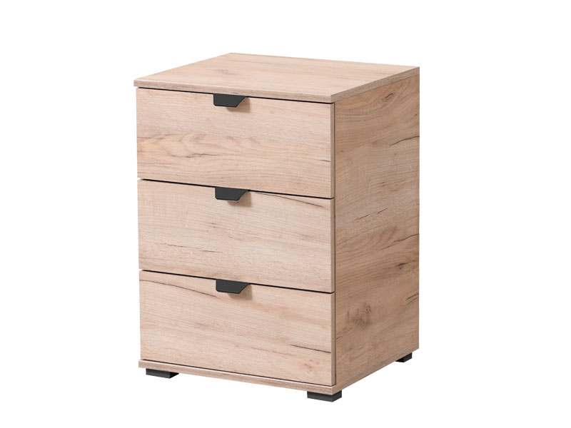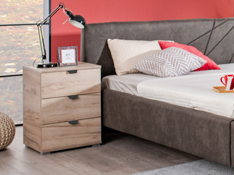 Noćni ormarić DUERO 3F, u dekoru sivog hrasta, je inovativni model noćnog ormarića, praktičnog dizajna, sa tri vertikalno smještene fioke. Funkcionalan je dio spavaće sobe i doprinosi estetici ambijenta.
