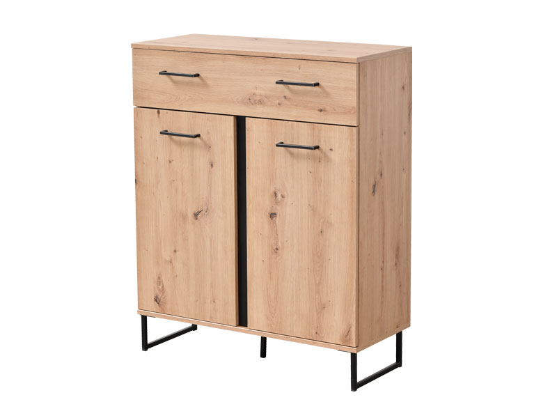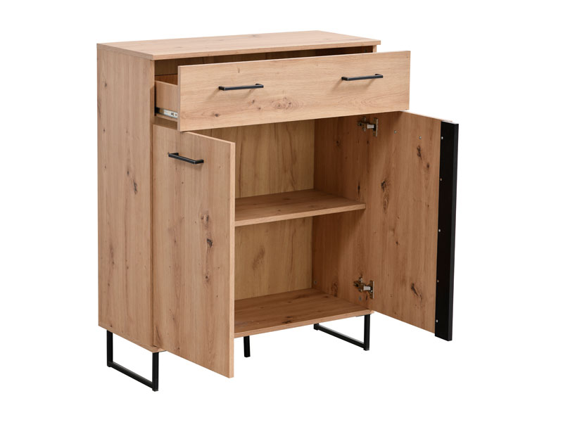 Komoda SARDINIA 2K1F, spoj je topline naturalnog i rustičnog artisan hrasta sa primjesama suptilnih crnih elemenata dekora, kao karakteristike industrijskog stila u dizajnu enterijera. Sastoji se od dva zatvorena segmenta sa jednom pregradnom policom i funkcionalnom fiokom. Dio je istoimene kolekcije SARDINIA sa kojom čini enterijersku cjelinu, a koja u vaš dom unosi odraz autentičnog i odvažnog životnog stila.