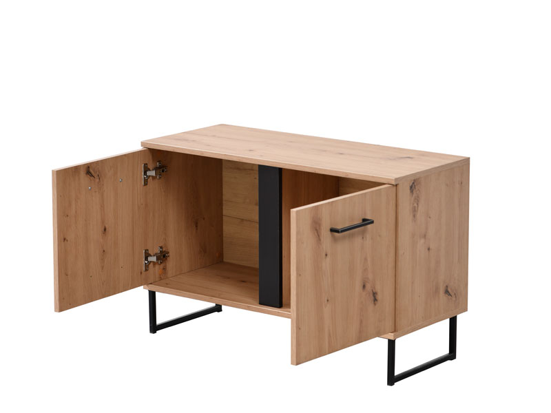Element predsoblja SARDINIA KOM, spoj je topline naturalnog i rustičnog artisan hrasta sa primjesama suptilnih crnih elemenata dekora, kao karakteristike industrijskog stila u dizajnu enterijera. Posjeduje praktičan dvodijelni zatvoren dio za odlaganje obuće i jastuk za sjedeći deo u sivom dezenu. Može se kombinovati sa drugim elementima kolekcije za predsoblje SARDINIA koji zaokružuju enterijersku priču ulaza u vaš dom.
