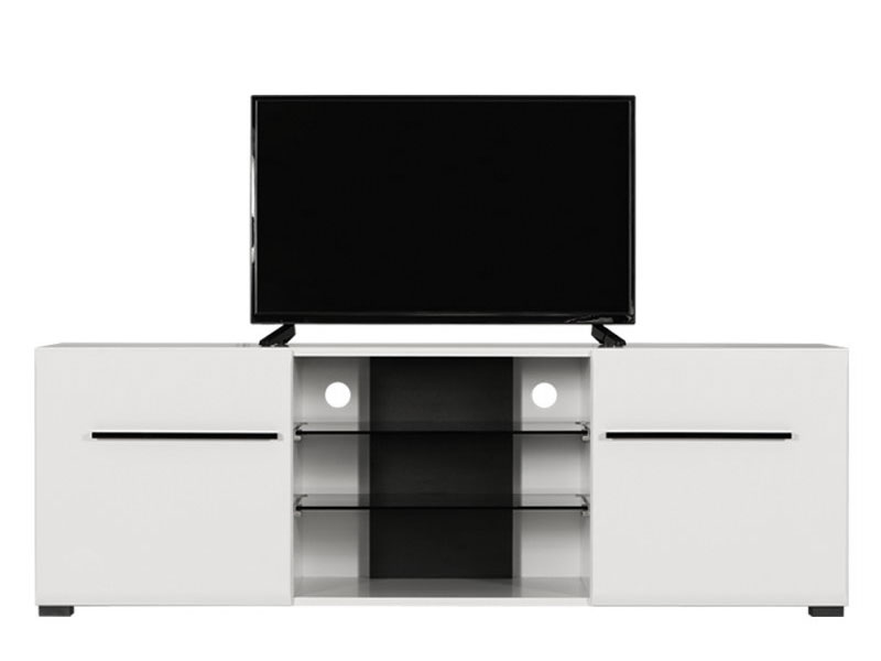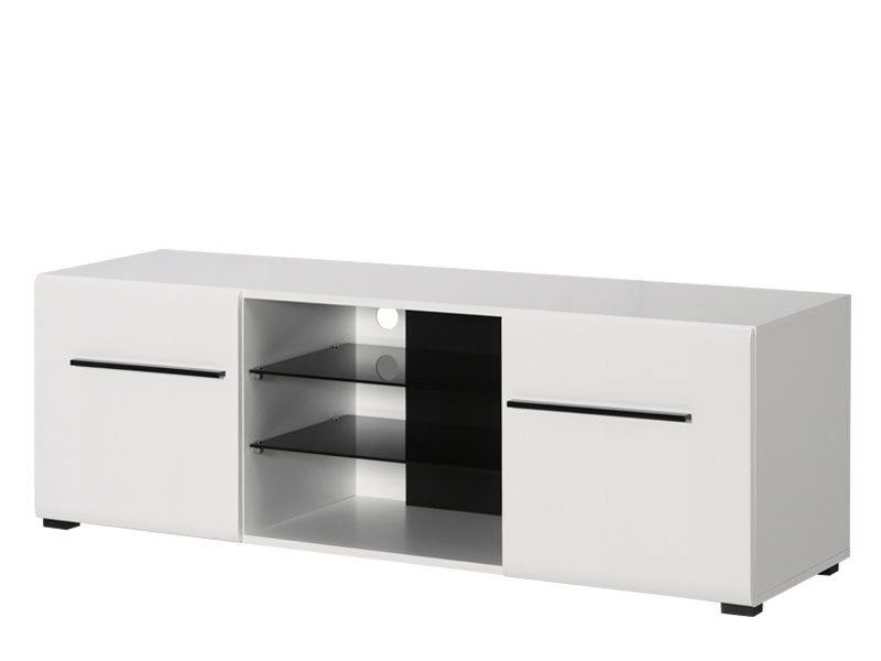 TV polica TRENTINO TV 150, u kombinaciji opak bijele i crne sa frontovima presvučenim bijelom lak folijom, dio je sistema elemenata TRENTINO čiji dizajn i funkcionalnost doprinose praktičnim i estetski autentičnim rješenjima za opremanje enterijera. Posjeduje bočno postavljene zatvorene dijelove sa soft-close zatvaranjem, i centralni otvoren dio sa dvije horizontalne pregrade od tamnog parsol stakla. Posjeduje mogućnost dodavanja LED rasvete.