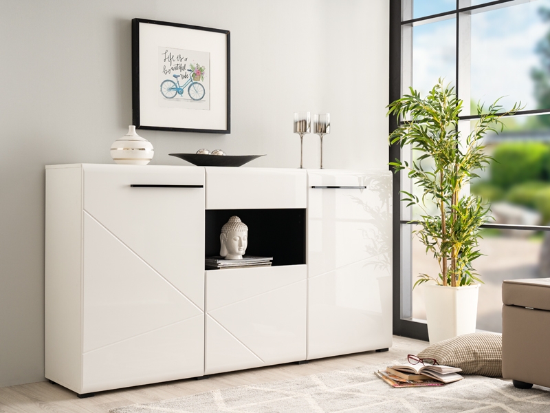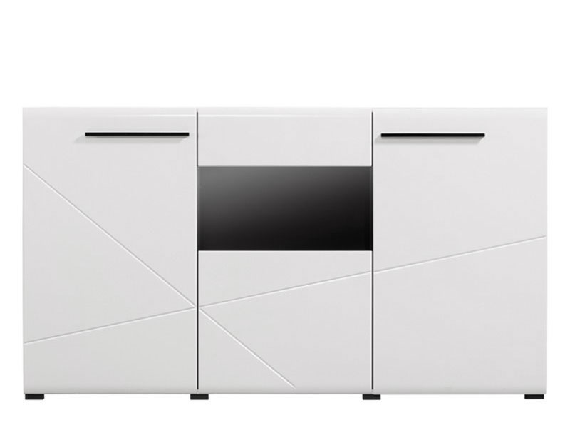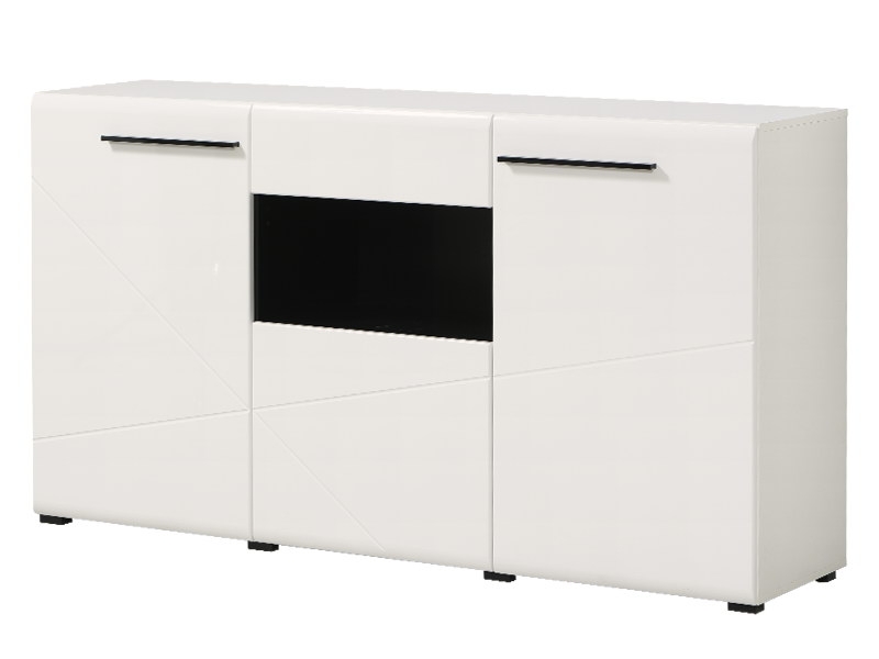 Komoda TRENTINO 3K1F, u kombinaciji opak bijele i crne sa frontovima presvučenim bijelom lak folijom sa 3D aplikacijama, dio je sistema elemenata TRENTINO čiji dizajn i funkcionalnost doprinose praktičnim i estetski autentičnim rješenjima za opremanje enterijera. Sastoji se od tri zatvorena dijela sa unutrašnjim pregradama i jedne fioke.