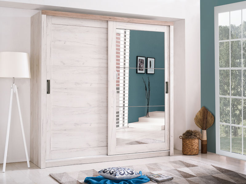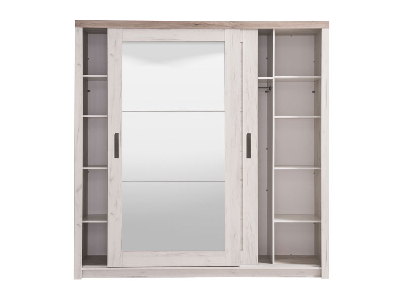 Garderober KENT 225 OG, u bijelom i sivom hrast dezenu, posjeduje bočno smještene segmente sa policama i centralno pozicioniran dio sa garderobnom šipkom. Poseban benefit ovog modela je ogledalo lijevo pozicionirano i klizni mehanizam koji doprinosi ekonomičnog organizaciji raspoloživog prostora. Dio je istoimene kolekcije koja u vaš dom unosi dodir otmene klasike i rafiniranog ukusa.