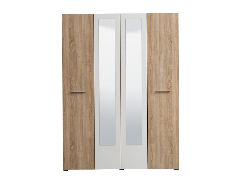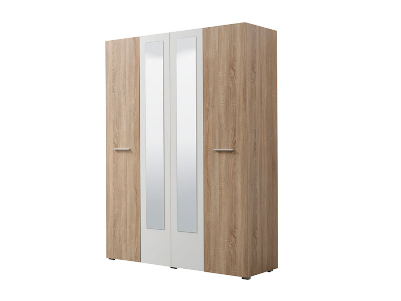 Ormar RITMO 4K2O, u dekoru sonoma hrasta i opak bijele, dio je istoimene kolekcije elemenata spavaće sobe. Posjeduje veoma praktično organizovan upotrebni prostor sa sistemom polica pozicioniranim desno i dijelom sa garderobnom šipkom i policom iznad nje na lijevoj strani. Dodatni estetski benefit je ogledalo u središnjem dijelu obostrano.