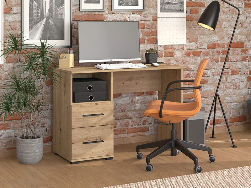 Kompjuter sto POLET 2F, u dekoru artisan hrasta, sa praktičnom radnom površinom i funcionalnim sistemom sa dvije fioke i otvorenom policom donosi sve neophodno za besprijekornu organizaciju radnog prostora.