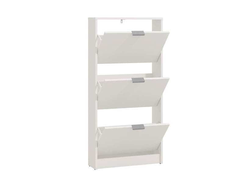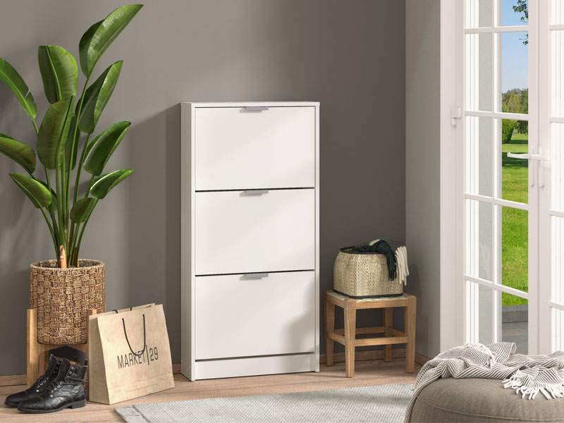 Cipelar BASE 13, u bijelom dezenu, posjeduje tri police za odlaganje sezonske obuće, a zahvaljujući svojim dimenzijama funkcionalno je rešenje za uređenje predsoblja manjih dimenzija.