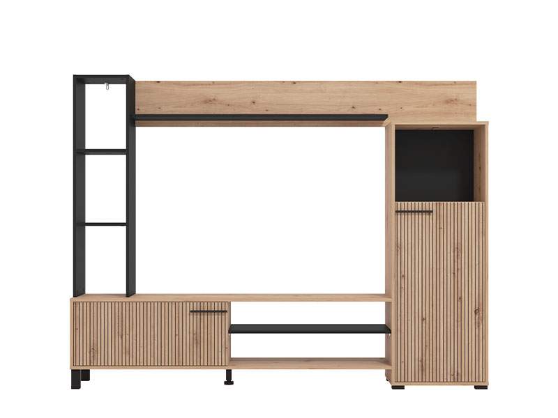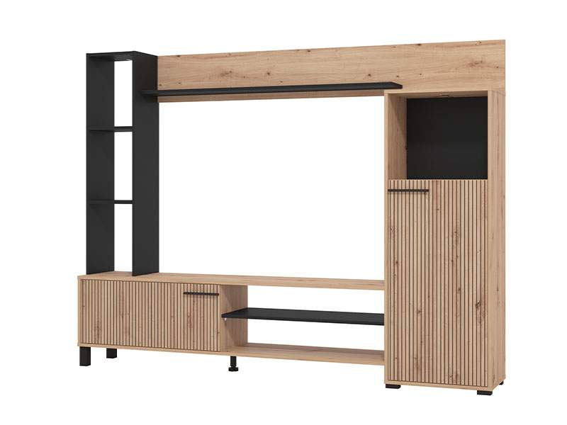 Regal RETIMNO, u kombinaciji dekora artisan hrasta, artisan hrasta sa prugama, kao i crnog dekora, dizajniran je da zadovolji funkcionalne i estetske zahtjeve u uređenju svakog ambijenta. Kompaktnog dizajna, regal RETIMNO omogućava praktično opremanje dnevnog boravka, zahvaljujući upotrebnom prostoru koji čine otvorene i zatvorene police za odlaganje, kao i prostor predviđen za TV uređaj (do 58") i ostalu audio-vizuelnu opremu. Postoji mogućnost dodavanja rasvete.
