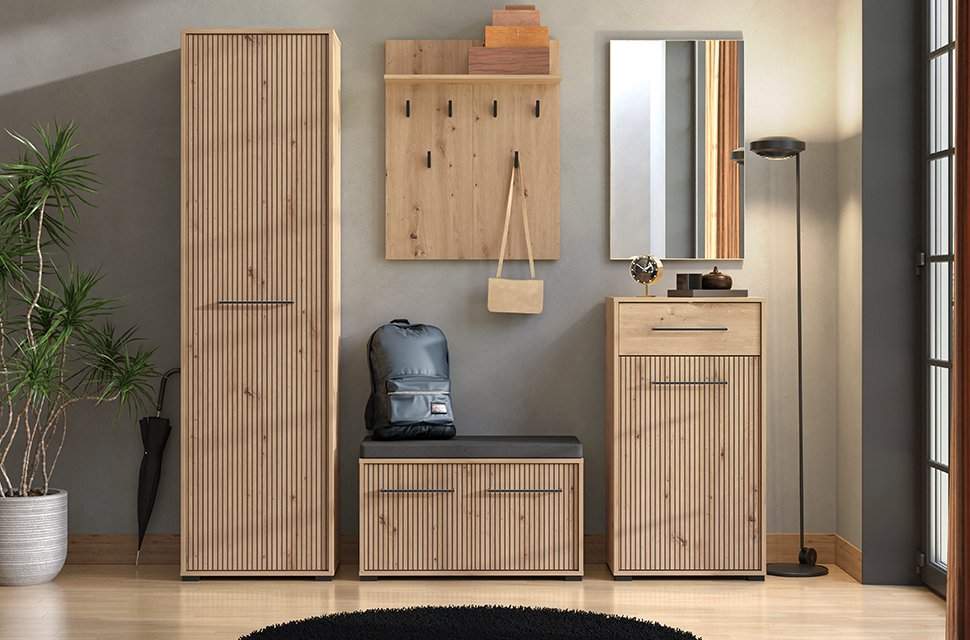 Element predsoblja LANDES KOM, u kombinaciji dekora artisan hrasta i artisan hrasta sa prugama, unijet će u vaše predsoblje praktičnu notu zahvaljujući kačilicama za odlaganje garderobe. Može se kombinovati sa drugim elementima kolekcije za predsoblje LANDES, koji zaokružuju enterijersku priču ulaza u vaš dom.