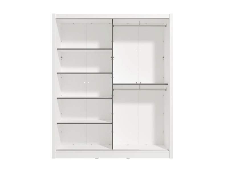 Model garderobera ALBI 180 OG sa kliznim vratima doprinosi enterijerskoj funkcionalnosti, estetici i maksimalnoj iskorišćenosti prostora. Upotrebni prostor ovog modela čine police u lijevom i garderobne šipke u desnom dijelu.