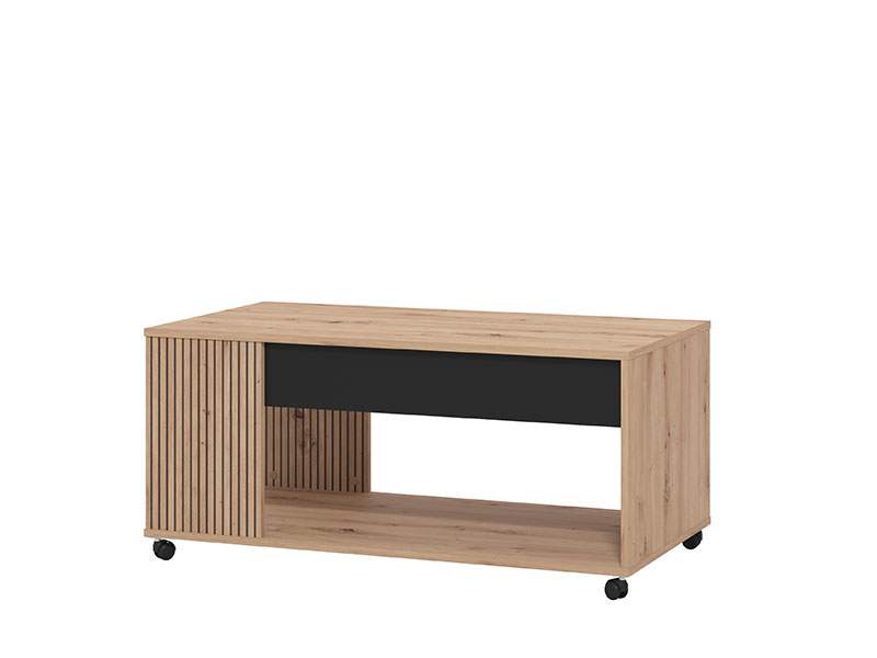 Klub sto MAYENNE je funkcionalni dodatak za uređenje dnevnog boravka. Kombinacija dekora artisan hrasta, artisan hrasta sa prugama koji se ističe na frontovima, kao i crne mat folije, čini ovaj sistem elemenata stilskim pečatom koji je potreban savremenim enterijerima. Istaknuti kontrastni dekori doprinose naglašavanju jednostavne dizajnerske linije. Otvorena polica i fioka efektno doprinose funkcionalnoj organizaciji dnevnog boravka. Dio je istoimenog sistema elemenata za uređenje ambijenta dnevnog boravka, koji predstavlja atraktivno rješenje za sve ljubitelje modernog dizajna enterijera.