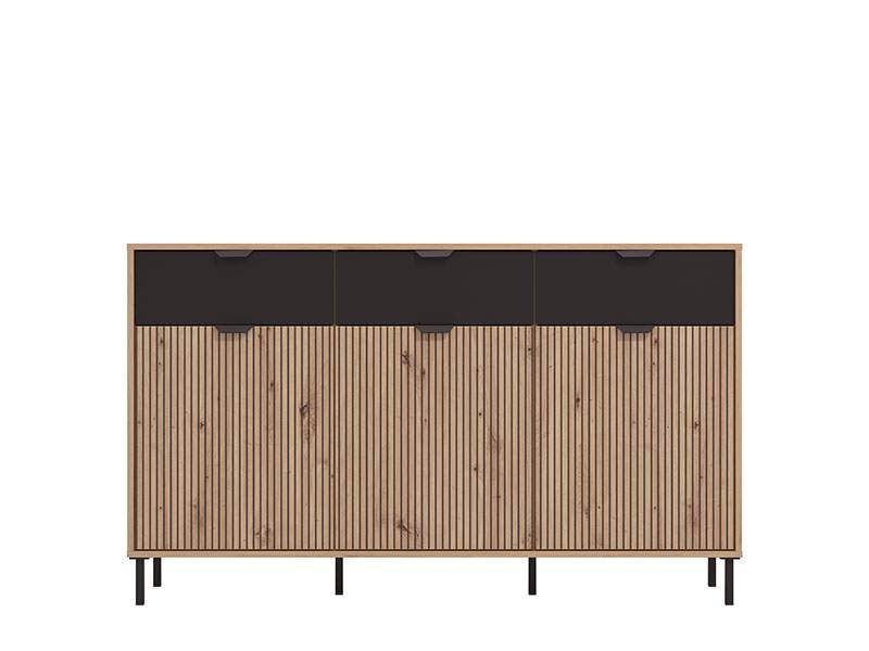 Komoda MAYENNE 3K3F u dekoru artisan hrasta i crne mat folije doprinosi funkcionalnosti i eleganciji čitavog ambijenta.Odlično raspoređen upotrebni prostor ove komode čine tri zatvorena dijela , kao i tri praktična fioke u središnjem dijelu.