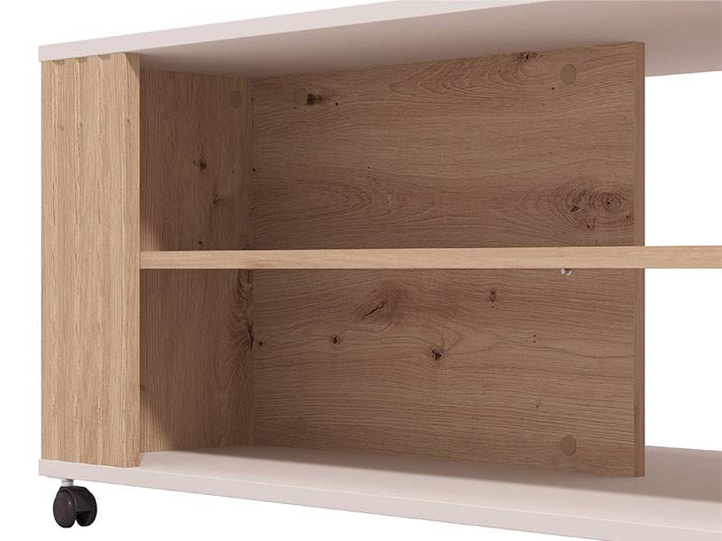 Klub sto BELFORT odlikuje raskošna kombinacija dekora artisan hrasta, kašmira i artisan hrast folije, koja donosi u prostor notu elegancije i ambijentalne topline i sa sofisticiranim stilskim izrazom koji je potreban savremenim enterijerima. Dio je istoimenog sistema elemenata za uređenje ambijenta dnevnog boravka, koji predstavlja moderno rješenje za stilizovanje ambijenta doma.