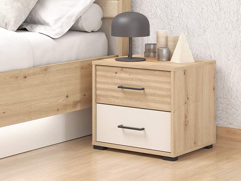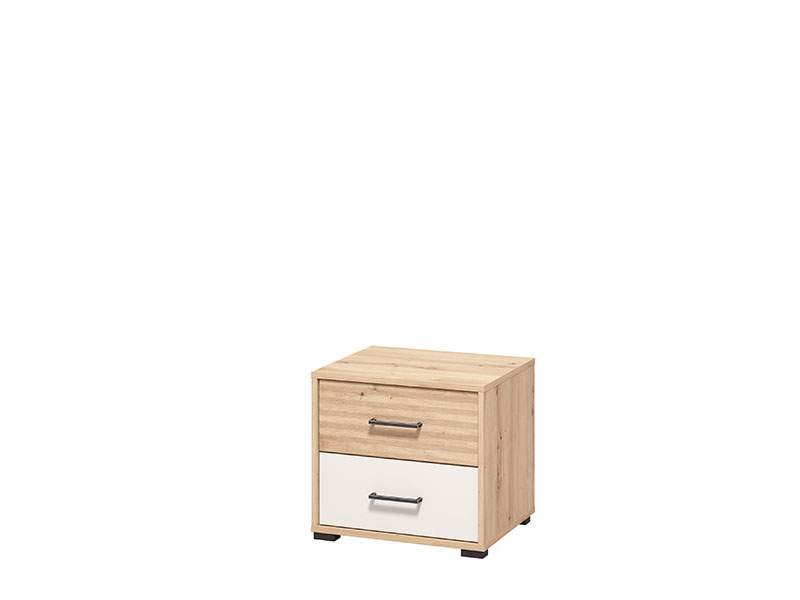 Noćni ormarić MODENA NO2F u kombinaciji dekora artisan hrasta, artisan hrast folije i kašmir dekora, predstavlja spoj funkcionalnog i moderno dizajniranog komada namještaja koji je neophodan i veoma praktičan element u svakom ambijentu spavaće sobe. Upotrebni prostor noćnog ormarića čine dvije praktične fioke. Dio je istoimenog sistema elemenata za opremanje spavaće sobe MODENA, moderne dizajnerske forme.