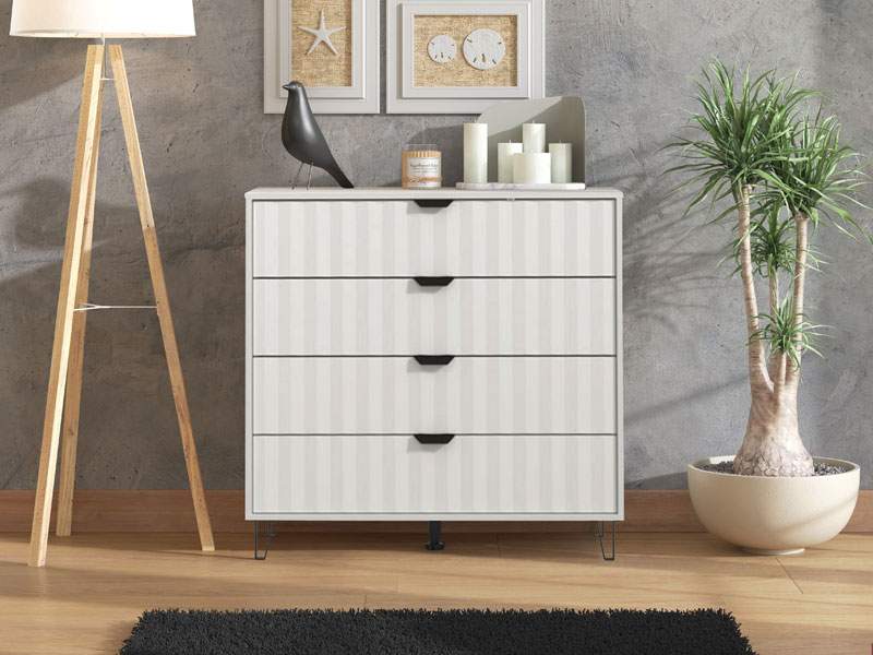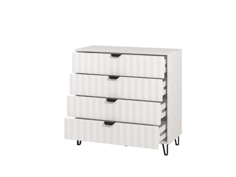 Komoda BREST 4F, u kombinaciji opak bijelog dekora i bijele mat folije dizajnirana je tako da zahvaljujući upotrebnom prostoru koji obezbjeđuju četiri prostrane fioke, spada u elemente sa velikom upotrebnom vrijednošću. Komoda BREST 4F je pogodna za opremanje predsoblja, dnevne zone, dečije ili spavaće sobe.