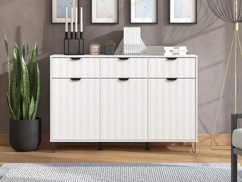 Odlično raspoređen upotrebni prostor ove komode čine tri zatvorena pregradna dijela i tri praktične fioke.