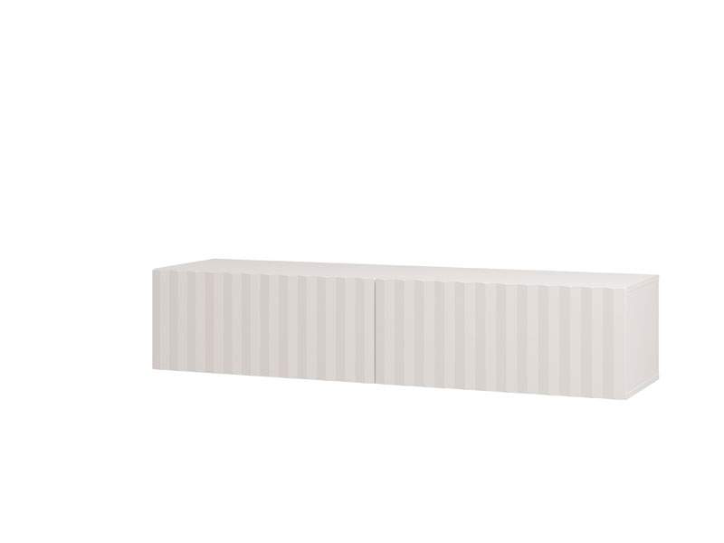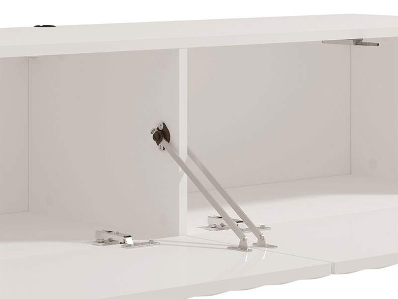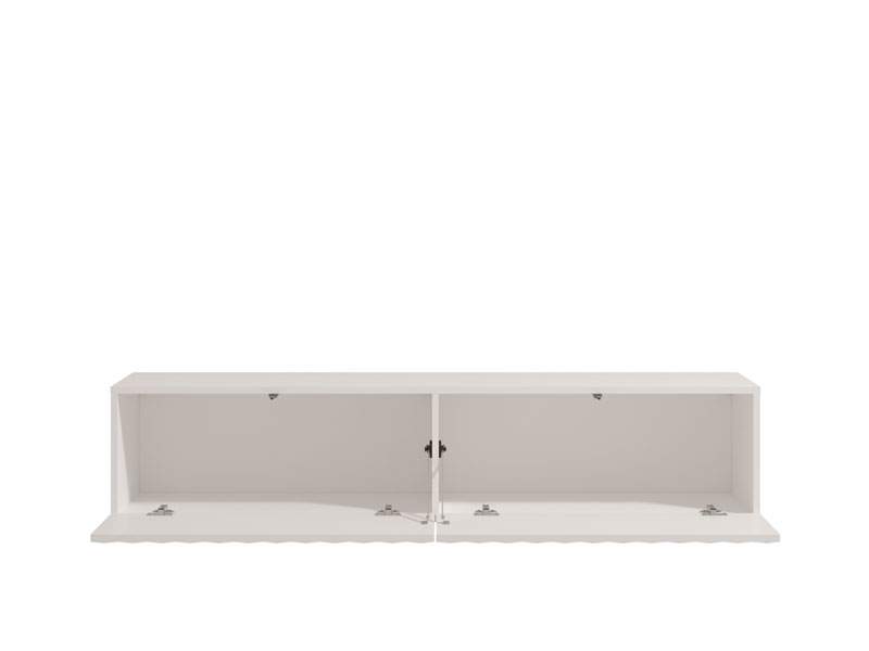 TV polica ANTIBES 154 TV 2K2V, u dekoru korpus opako bijela, front MDF-3D bijela mat folija, namijenjena je opremanju dnevnog boravka i odlikuje je savremen dizajn, kao i izražena estetska nota. Funkcionalan je komad namještaja koji će se idealno uklopiti u ambijente modernih domova. Upotrebni prostor čine dva zatvorena pregradna dijela. Postoji mogućnost dodavanja rasvjete.