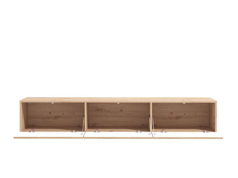 TV polica ROYAN TV 192 3K3V, u kombinaciji dekora artisan hrasta i artisan hrast folije, namijenjena je opremanju dnevnog boravka i odlikuje je savremen dizajn, kao i izražena estetska nota. Funkcionalan je komad namještaja koji će se idealno uklopiti u ambijente modernih domova. Upotrebni prostor čine tri zatvorena pregradna dijela. TV polica ROYAN TV 192 3K3V je model konzolne TV police, koje spadaju u najzastupljenije trendove u dizajnu pločastog namještaja. Ovaj model TV police posjeduje mogućnost dodavanja rasvjete.