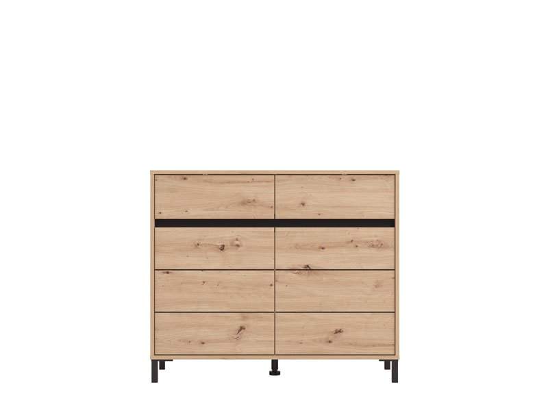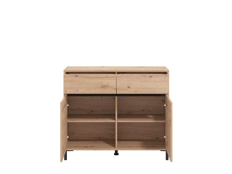 Komoda MARRON 106 2K2F2V, u kombinaciji artisan hrast dekora s crnom mat folijom, funkcionalan je komad namještaja koji je potreban svakom ambijentu doma. Odlično raspoređen upotrebni prostor ove komode čine dva zatvorena pregradna dijela i dvije praktične fioke.