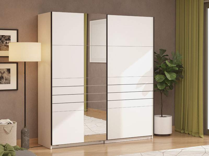 Garderober VEYMONT 200 OG h217 s kliznim vratima, u opak bijelom dekoru i segmentom s ogledalom na lijevom frontu, doprinosi funkcionalnosti i estetici interijera. Dio je kolekcije garderobera VEYMONT i predstavlja elegantno i veoma atraktivno dizajnersko rješenje, čija izražena estetika doprinosi cjelokupnom ambijentalnom utisku. Upotrebni prostor ovog modela čine garderobne šipke i po jedna praktična polica s lijeve i desne strane. Posjeduje mogućnost dodavanja seta polica odgovarajućih za ovaj model garderobera, kao i mogućnost ugradnje usporivača za klizna vrata.