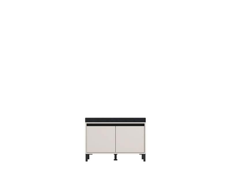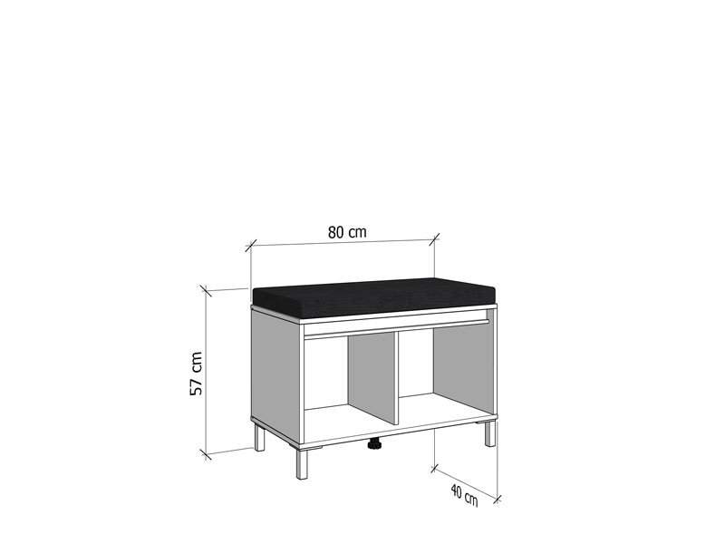 Element predsoblja ARRAN KOM u kašmir dekoru i detaljima izrađenim od crne mat folije, posjeduje praktičan dvokrilni zatvoreni dio za odlaganje obuće i jastuk za sjedeći dio u crnom dezenu. Može se kombinovati s drugim elementima kolekcije za predsoblje ARRAN, koji zaokružuju interijersku priču ulaza u vaš dom.